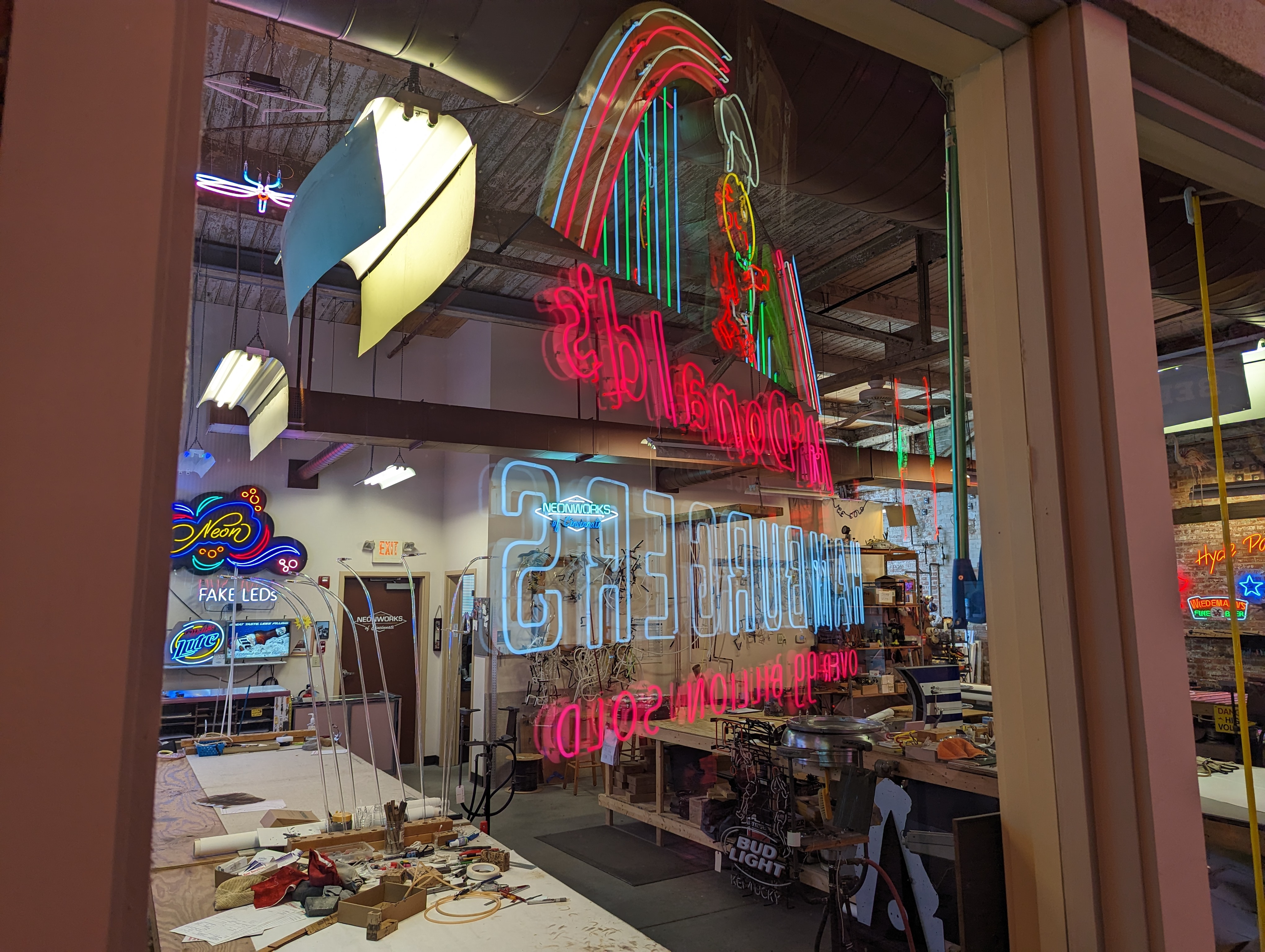 Today we went to The American Sign Museum.  It's a small but cool museum and we got in with our NARM pass!  The museum has a ton of signs and gives history on sign making and they have a collection of sign making books and guides that people would have used.  They also have a working Neon shop.  It was a fun stop and we even got to see some signs we remember from Orange County.